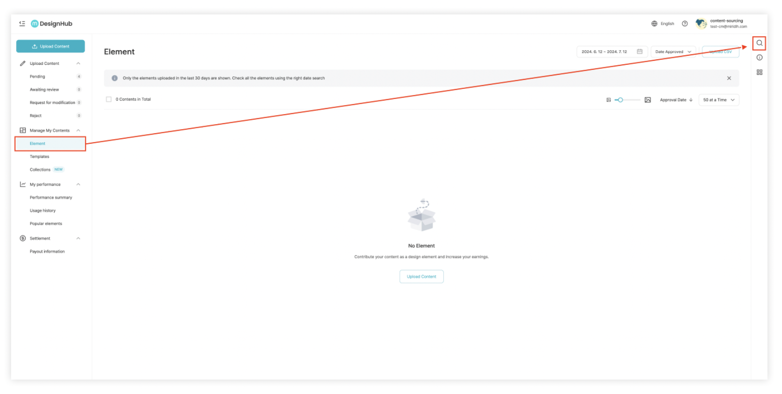 After accessing the [Element] page, click the icon at the top right and set your desired search conditions.