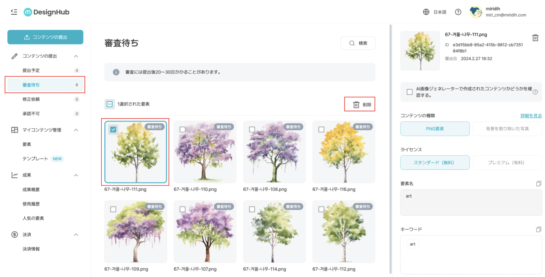 審査待ちのコンテンツの削除をご希望の場合、そのコンテンツを直接削除することができます。