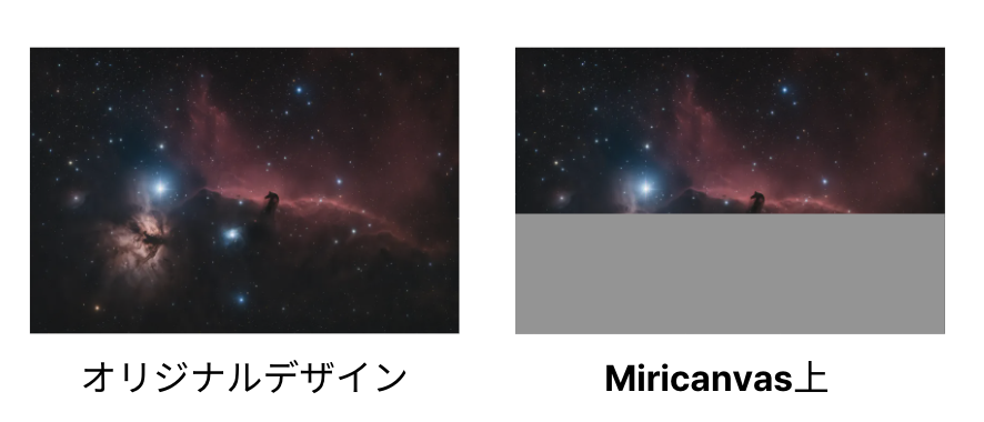 一部のケースにおいて、デザインハブで正常に登録された素材が、Miricanvas上で変形した状態で表示されることがあります。