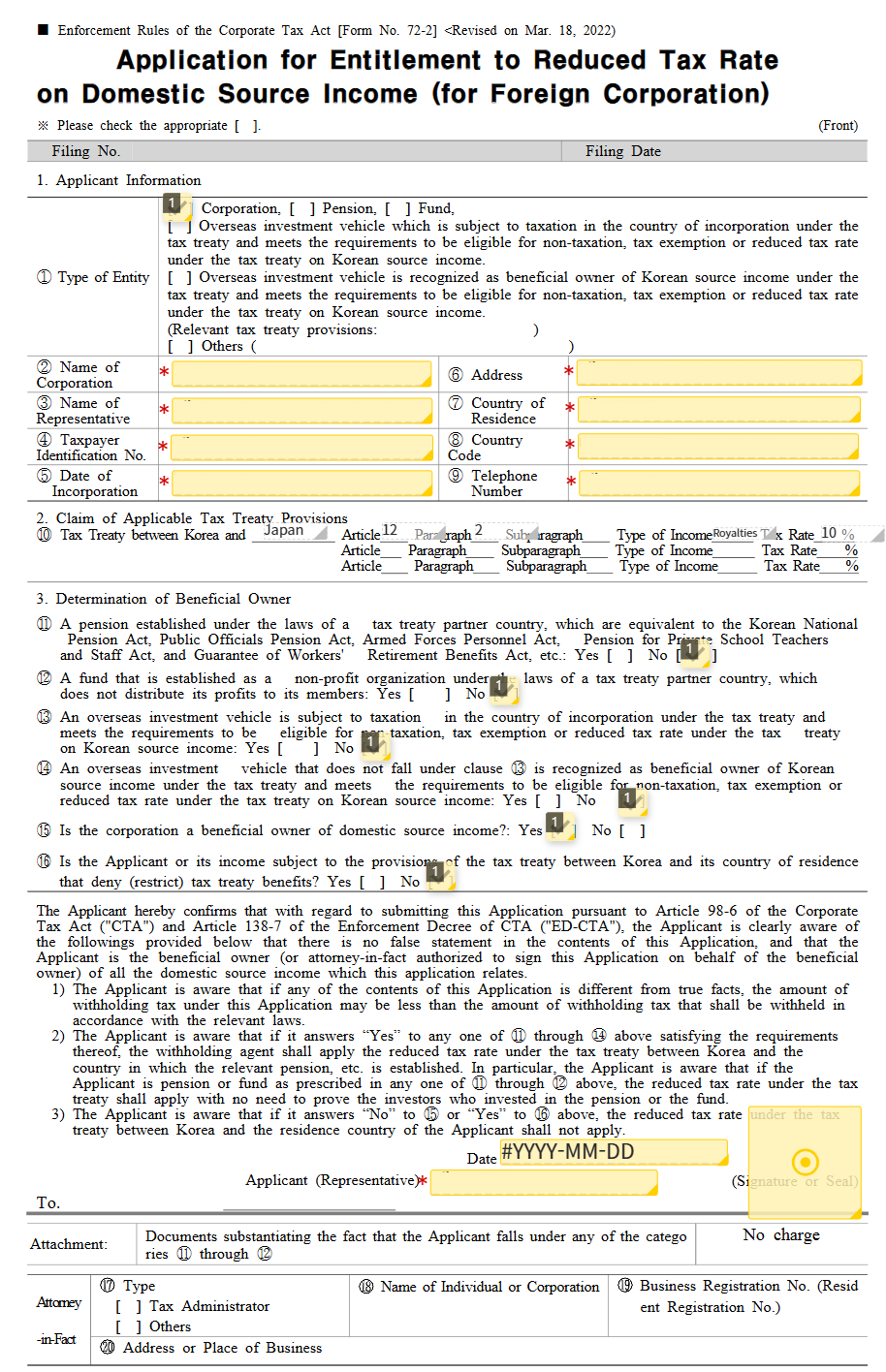 - 但し、英語版の申込書を提出した場合、申込を受理することができません。必ず韓国語版を使用し、作成してください。