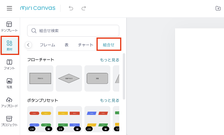 [MiriCanvas > 素材 > 組合せ] タブで確認できます。