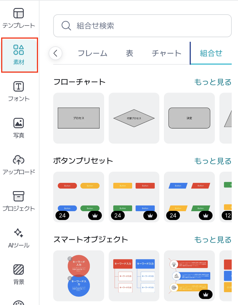 [MiriCanvas > 素材 > 組合せ] で デザイン組合せを、