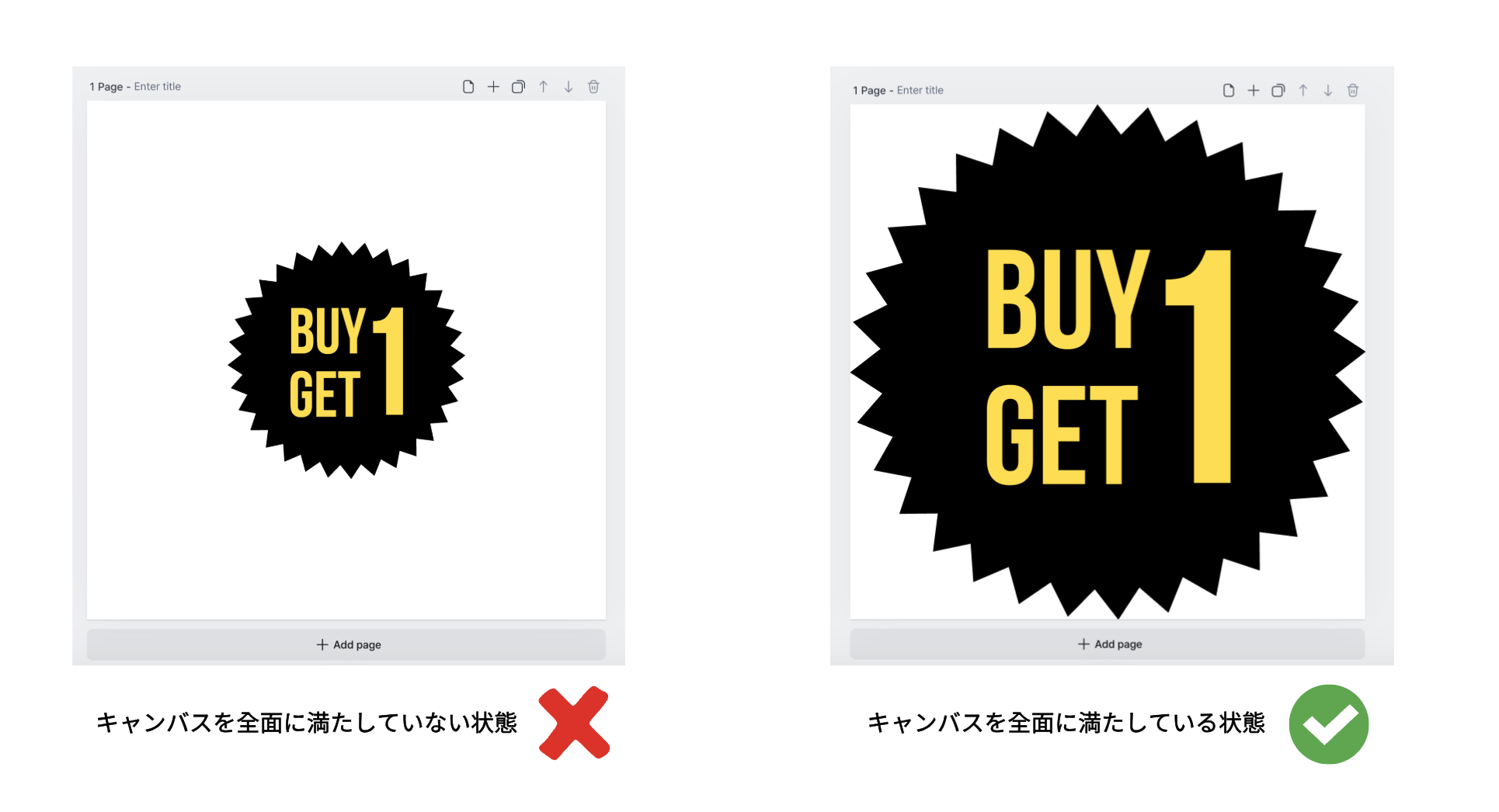 キャンバス全体を覆っていない場合、DesignHubやMiricanvas上で表示されるサムネイルが非常に小さく見える恐れがあります。