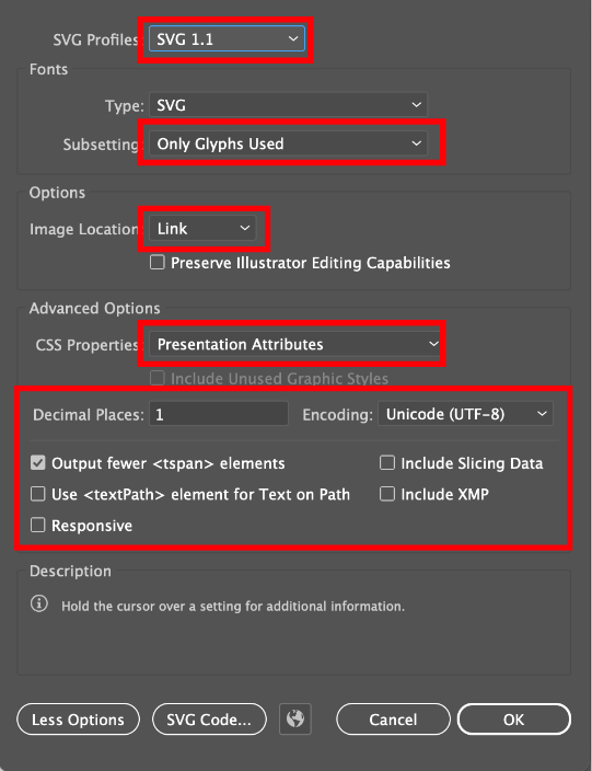 - 크롭화 이미지를 File > Save As > SVG 포맷으로 저장합니다.
