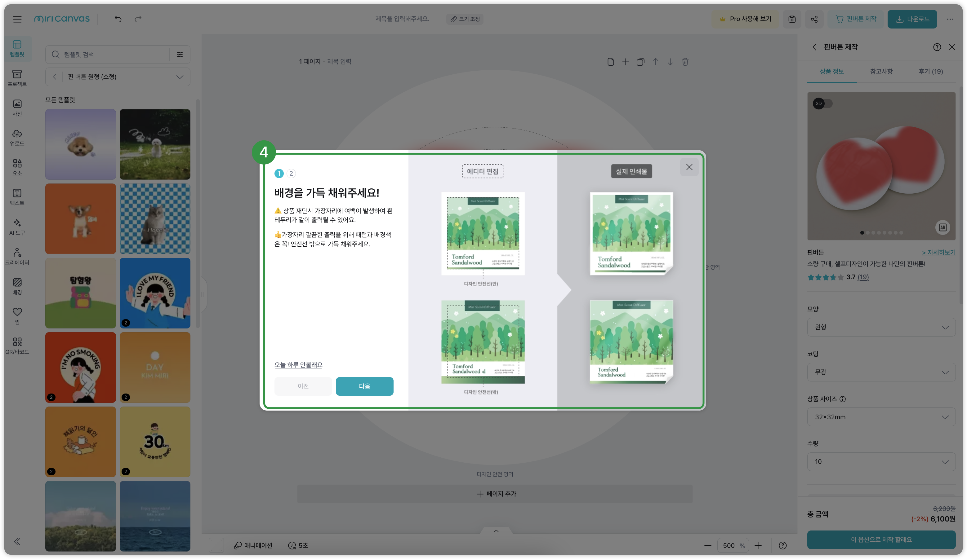 - ④ 인쇄가이드에 맞춰 디자인을 조정해주세요