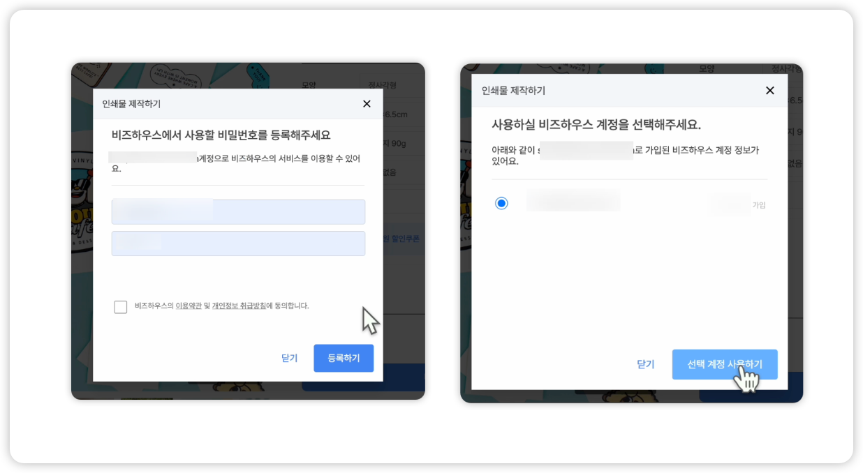 - ⑧ 계정이 없는 경우 비즈하우스 계정을 생성해주시고, 사용할 비즈하우스 계정을 선택해주세요.