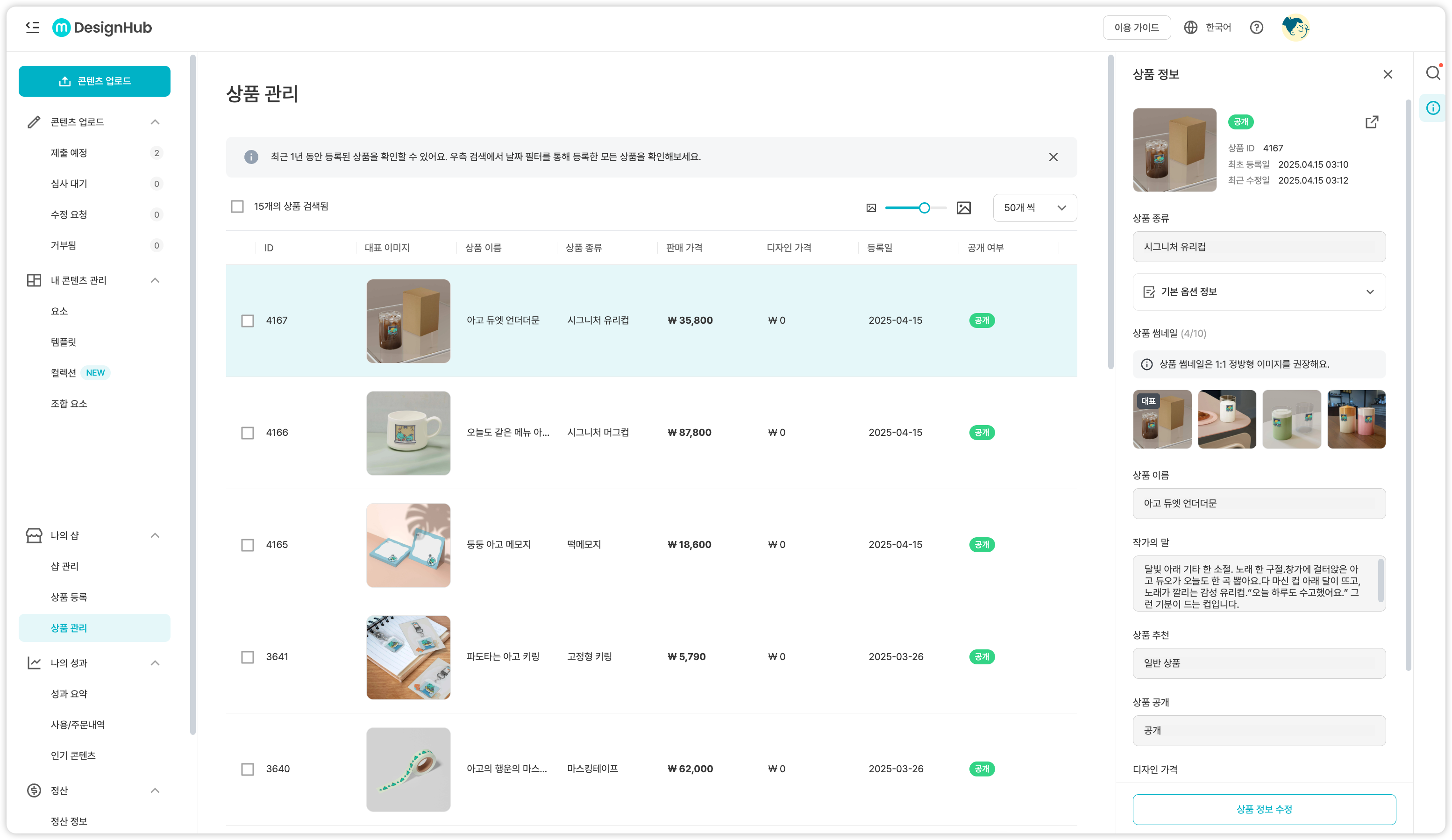 [ 디자인허브 > 나의 샵 관리페이지 ]
